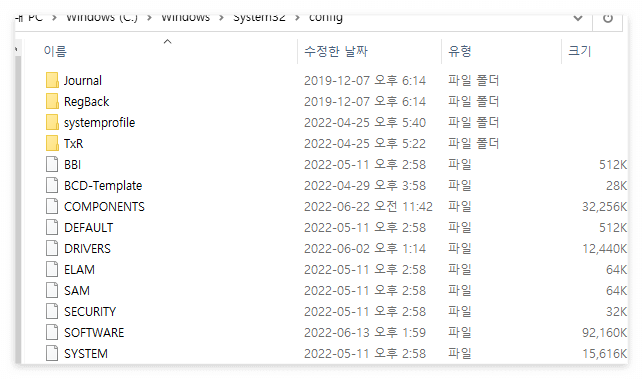 C:\Windows\System32\config ์ ํด๋น ์ค์ ํ์ผ๋ค์ด ์์