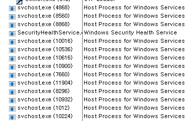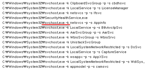 ## svchost์ ํ๋ก์ธ์ค ๋ฆฌ์คํธ ##
