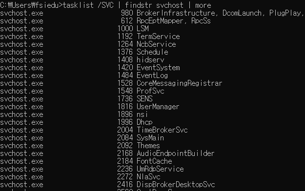 C:\Users\fsiedu>tasklist /SVC | findstr svchost | more