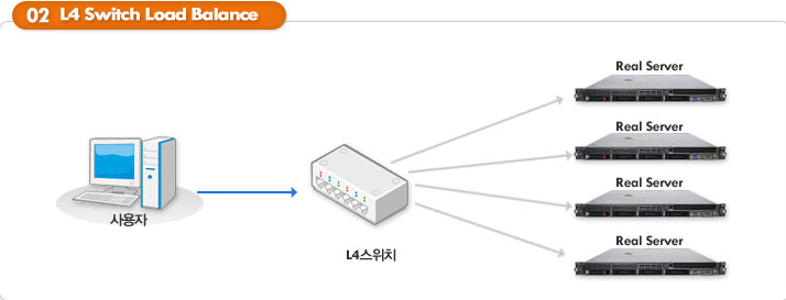 부하분산: L4스위치를 통한 로드밸런싱으로 다수의 서버들이 서버로드 및 트래픽 등 분산알고리즘에 따라 분배되어 처리하는 기능이에요.