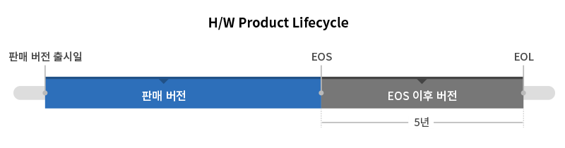 부품단종, 기술변화 등으로 H/W 제품 수명이 종료된 버전을 의미합니다.