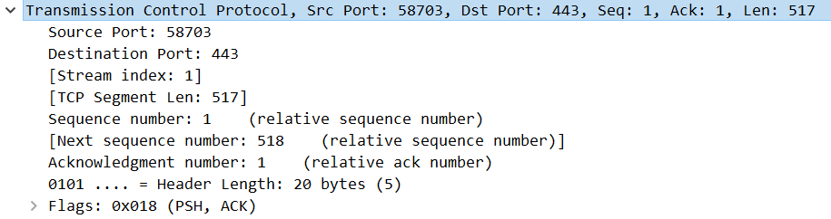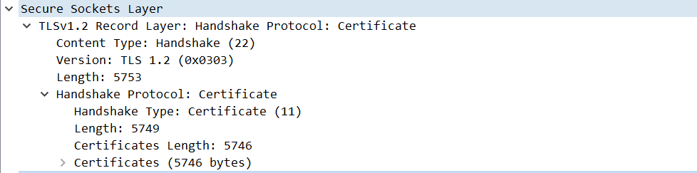 SSl 부분을 보면 Content Type 이 22로 Handshake를 나타내는 것을 알 수 있는데, 아까 사용한 ssl.record.content_type == 22은 이 영역에 대한 값으로 필터링한 것이다.
