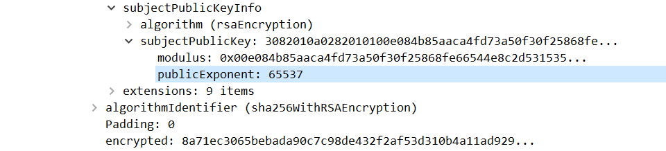 인증서의 시리얼 넘버나 유효기간, 서버의 공개 키 등을 확인할 수 있다.