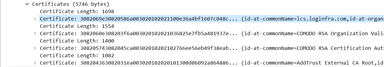 certificate가 4개 존재한다. 가장 하위에 존재하는 것이 ROOT CA에 대한 인증서이고, 가장 위에 존재하는 것이 서버의 인증서이다.