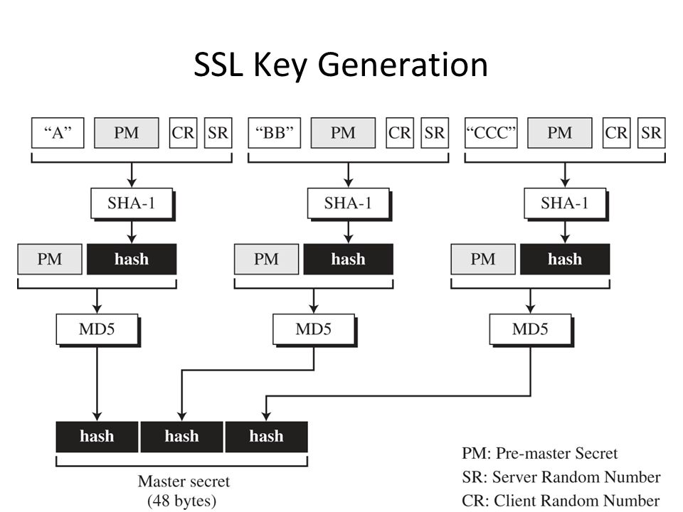 위의 과정을 이용하여 Master secret을 생성했다면, 이제 이 Master secret과 client random, server random을 이용하여 Key material을 생성한다.