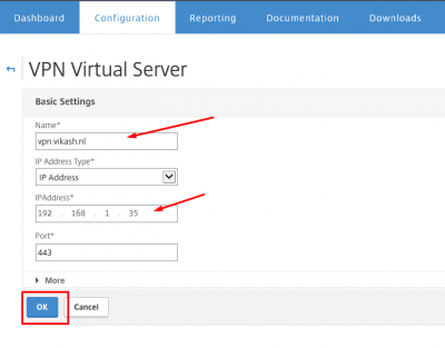 Give the virtual server a name. Set the IP address and click on OK.