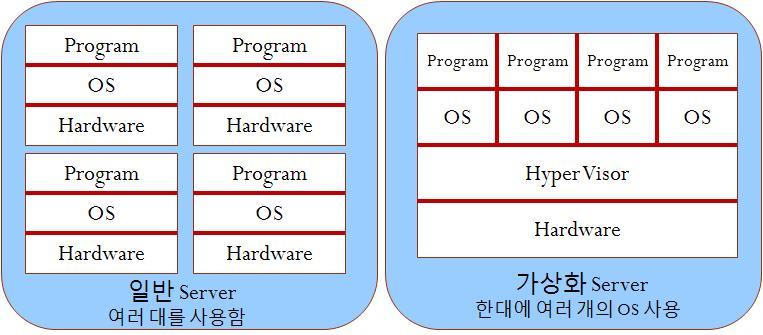 자원을 충분히 활용하지 못하는 여러대의 Server를 한대의 가상화 Server로 사용함