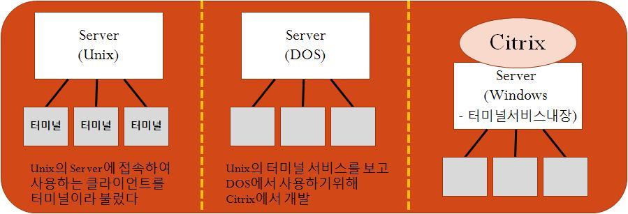 윈도우 단말 자체는 응용처리 기능을 갖지 않고