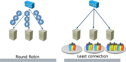 - 서버들 중 세션수가 가장 적은 서버로 사용자 접속을 유도하는 방식.