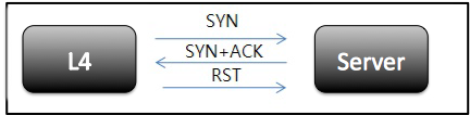 TCP 서비스 경우 LB 장비에서는 바인딩된 서버의 포트로 TCP SYN 을 전송하여 SYN+ACK 응답이 오는지를 확인하며 응답이 없다면 서버의 서비스 상태에 문제가 있다고 인식을 하고 바인딩을 하지 않습니다. 그리고 기본적으로 서버가 SYN+ACK을 응답할 경우 서버의 Socket 낭비를 막기 위해 바로 RST을 통해 세션을 끊습니다. 이방법은 LB장비의 부하가 적고 서버의 Socket 낭비가 없는 이점이 있는 반면 실제 서비스 어플리케이션단은 체크를 할수 없는 문제점이 있습니다.