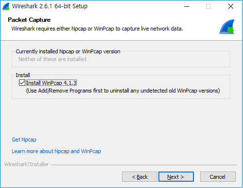 4. next로 설치를 진행하다보면 중간에 WinPcap을 설치하겠냐는 창이 뜬다. 그것까지 설치해주면 완료.