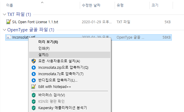 1. 다운로드 파일 1.1. 폰트 - Inconsolata 다운로드 1.2. SecureCRT Keywords 다운로드 2. 위의 두 개의 파일을 바탕화면에 다운로드 3. 압축 풀기 4. 폰트 설치 5. keyword 압축 해제 후 폴더 이동 C:\Users\..