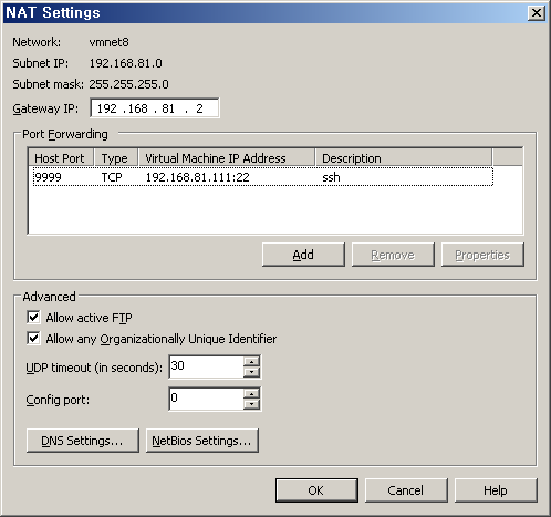 6.x 버전 VMware에서는 따로 Port Forwading 이라는 메뉴를 통해 접근했었는데, VMware 7.x 부터는 이런식으로 포트 포워딩을 세팅할 수 있습니다. 보이다시피 저는 이미 HostOS의 TCP/9999 포트를 통해서 VM머신의 리눅스의 SSH 서비스를 제공하고 있습니다.