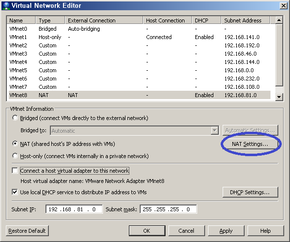 [3] 편집(Edit) - 가상 네트워크 편집기(Virtual Network Editor) 을 열어 VMnet8을 선택합니다.