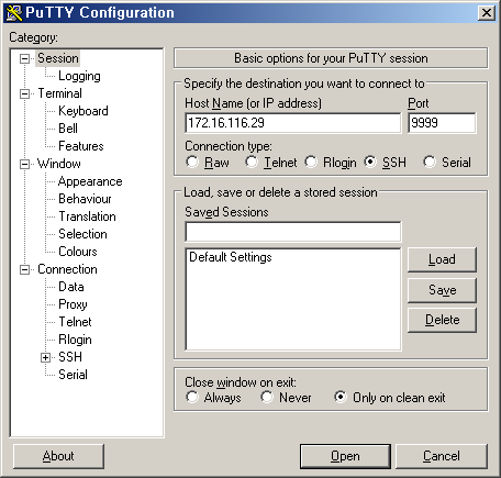 PuTTY 말고도 XShell, SecureCRT 등 많은 접속 클라이언트가 있습니다. 저는 제가 이전에 설정해 놓은 SSH 서비스를 Host IP를 통해서 접근해보도록 하겠습니다. 당연히 접속할 곳은 Host IP, Host port 가 되야겠죠?