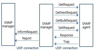 Simple Network Management Protocol(이하 SNMP)는 네트워크 장비의 성능과 핵심 기능의 현 상태/기능 정보를 수집하고 관리, 저장할 수 있는 프로토콜입니다. 관리자는 SNMP를 통해 수집한 정보를 바탕으로 네트워크 장비의 현재 기능 상태와 성능 정보, 장애 발생 부분을 확인하고 대처할 수 있습니다. 뿐만 아니라 SNMP를 통해 장비의 정보(설정, Config)를 수정할 수도 있지요. SNMP는 UDP(Port 161)를 사용하여 장비의 정보를 수집합니다. 즉 SNMP를 사용한다는 것은 UDP/IP를 사용하며 Port 161을 사용한다는 것을 의미하죠.