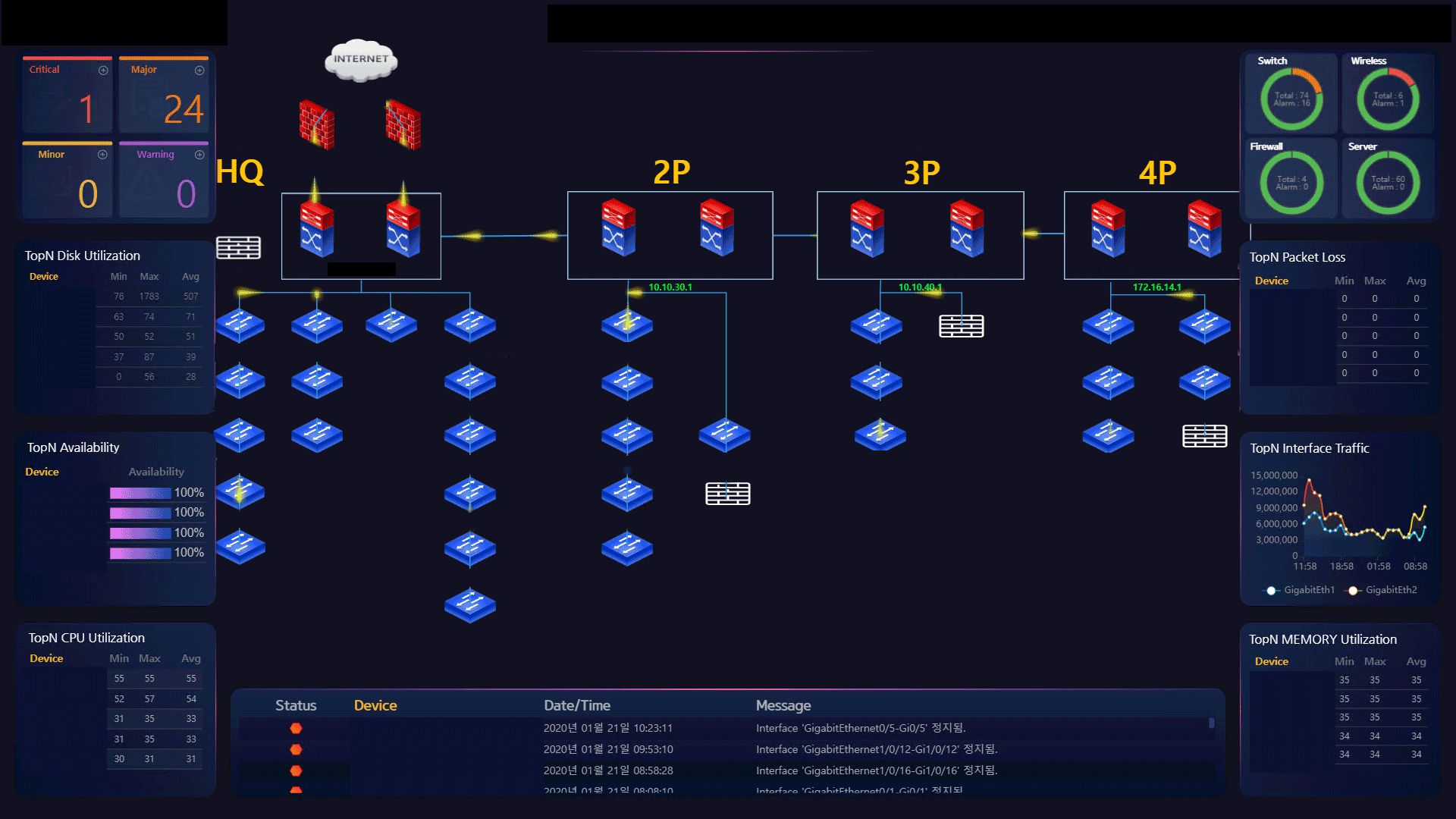 여기까지 보시면 네트워크 장비만을 관제하기 위한 프로토콜 같아 보이지만 그렇지 않습니다. SNMP를 지원하는 컴퓨터 혹은 장비라면 SNMP를 이용해 관제할 수 있습니다. 아래 그림을 보시면 각종 네트워크 장비뿐만 아니라 프린터와 컴퓨터까지 있는 것을 볼 수 있죠. 여러분이 사용하고 있는 PC도 SNMP를 활성화시킨다면 SNMP를 이용해 컴퓨터의 각종 성능을 관제할 수 있습니다.