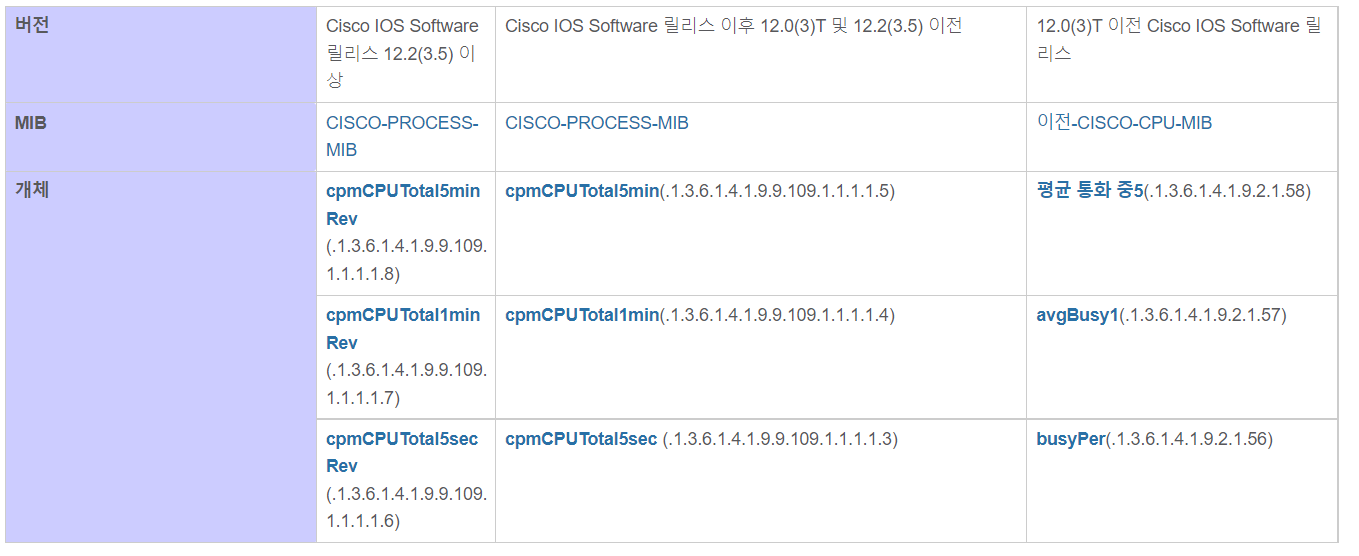 Cisco社의 평균 CPU 사용률 OID(출처 : https://www.cisco.com/)