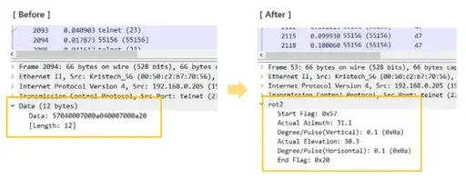 Wireshark는 Application Data 영역이 알려진 프로토콜이 아닌 경우 단순히 바이트 배열로 나열해 준다. 그러나 Lua Script를 활용하면 잘 알려진 TCP, UDP 프로토콜 헤더처럼 분석이 용이한 형태로 해부(Dissect)할 수 있다. 또한 Application Data 영역의 세부 필드들도 TCP, UDP 프로토콜등과 같이 필터링에 손쉽게 활용이 가능하다.